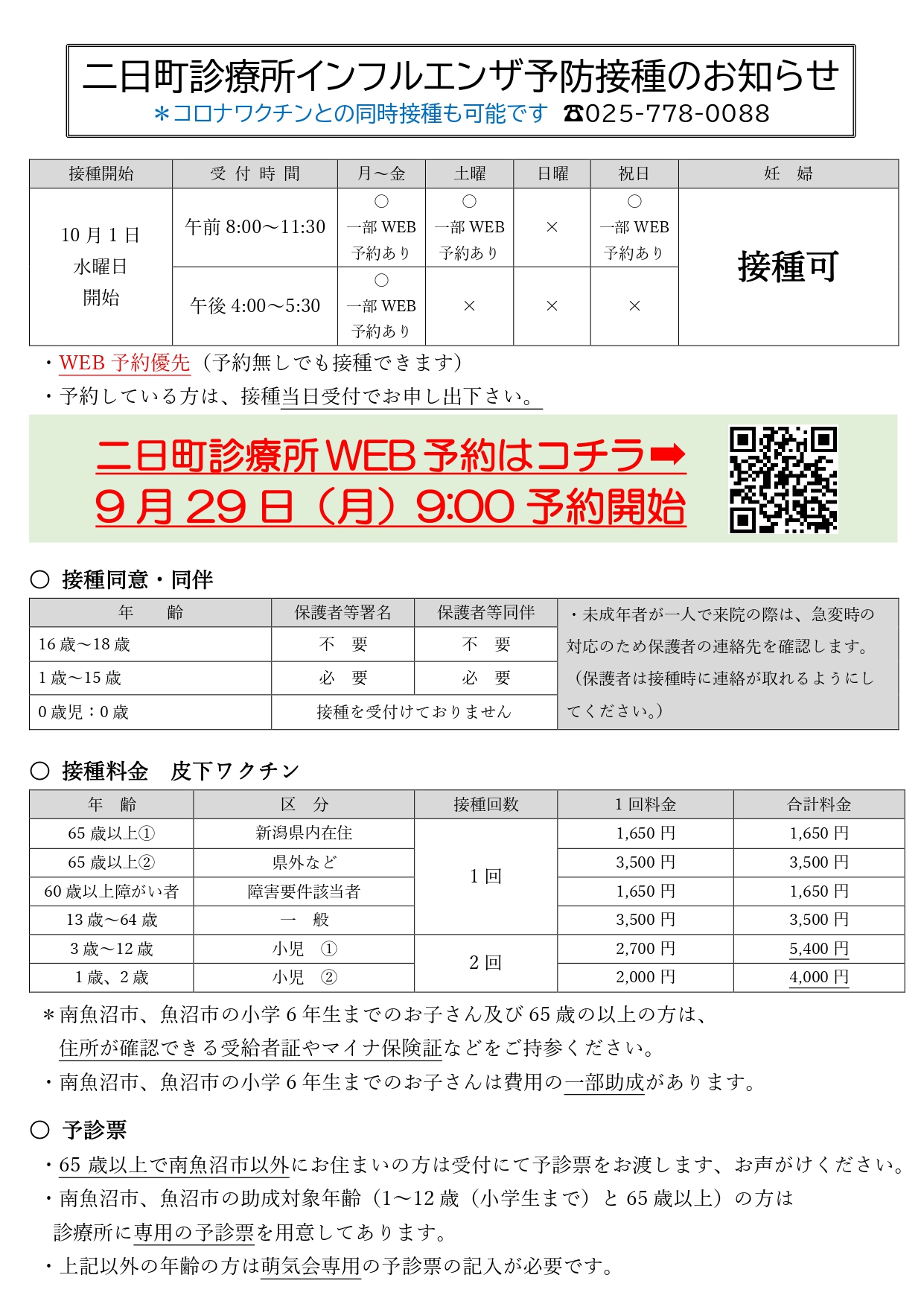 インフルエンザ予防接種予防接種開始のお知らせ