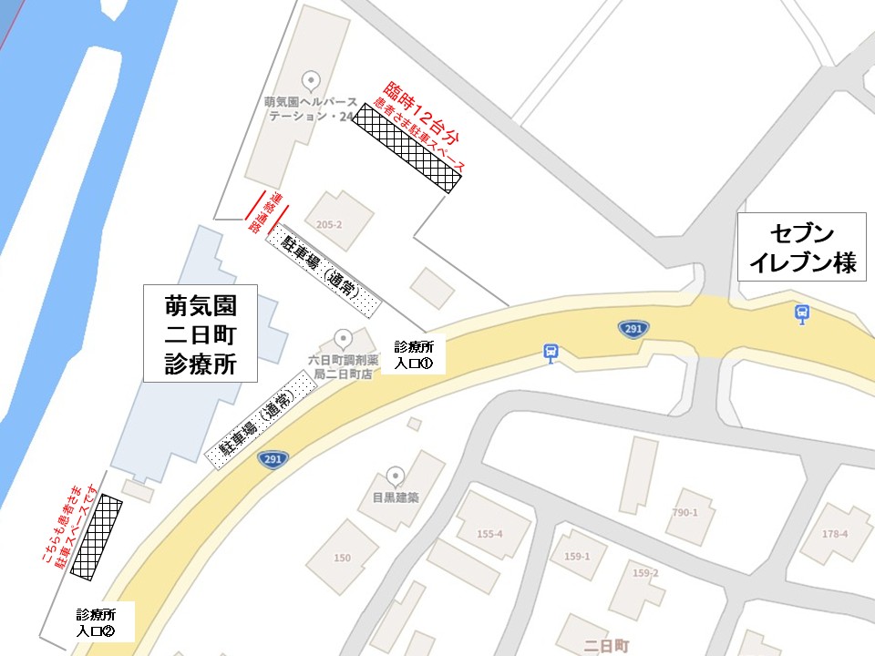 二日町診療所 臨時駐車場のお知らせ 2025年10月24日 11月1日~12月31日の期間中にはインフルエンザ予防接種繁忙期のため、駐車場が大変混雑いたします。 駐車場満車の場合は臨時駐車場を設けておりますので、地図上の臨時駐車場をご利用ください。 ご迷惑をおかけいたしますが、ご理解、ご協力のほどよろしくお願い申し上げます。