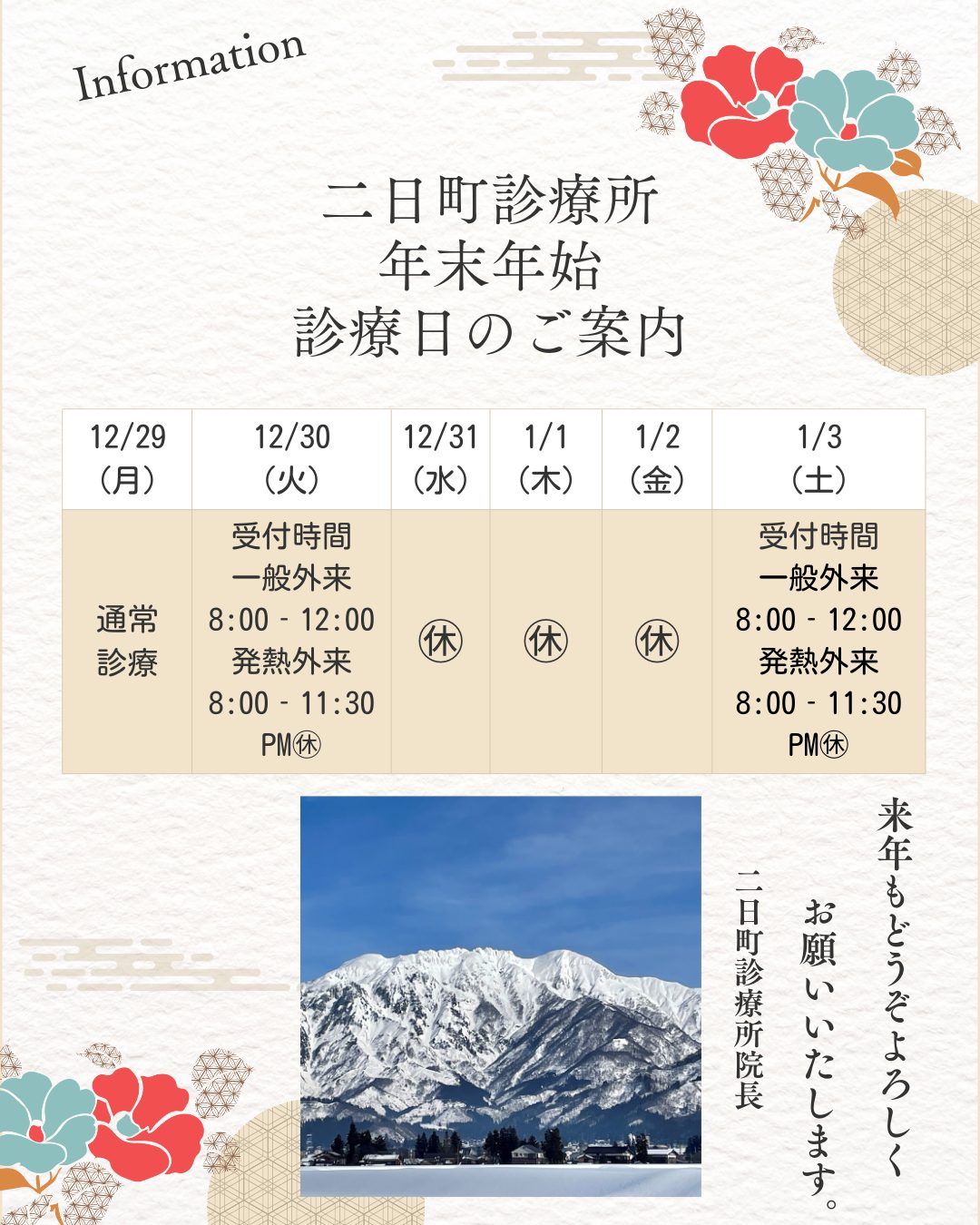 二日町診療所 インフルエンザ予防接種外来のお知らせ